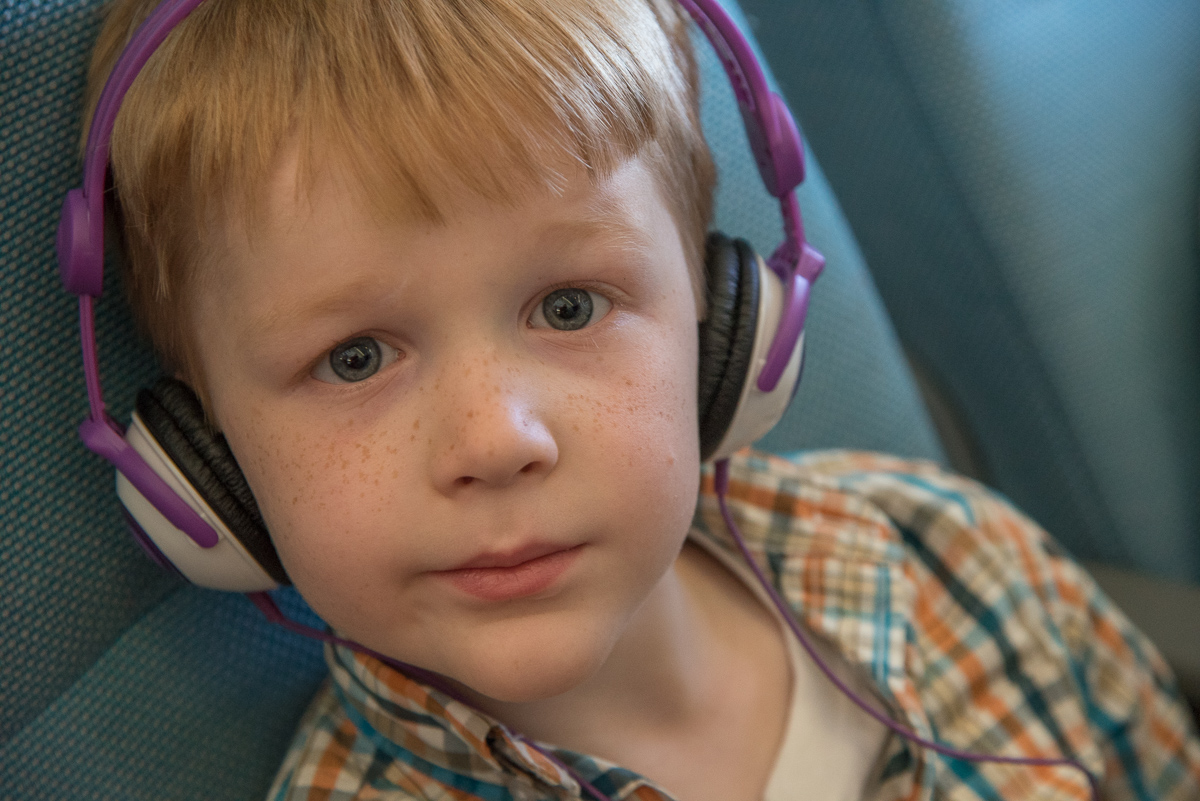 Beast was fairly quiet on the flight once we got settled, right up until the end. He liked the games on the video screens, as well as trips to the loo.
